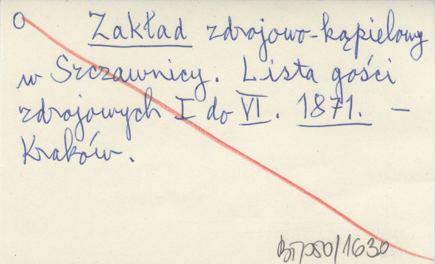 Zakład zdrojowo-kąpielowy w Szczawnicy. Lista gości zdrojowych I do VI. 1871