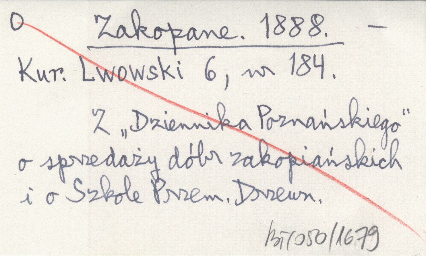 Kurier Lwowski, 6, nr 184. Z "Dziennika Poznańskiego" o sprzedaży dóbr zakopiańskich i o Szkole Przemysłu Drzewnego.