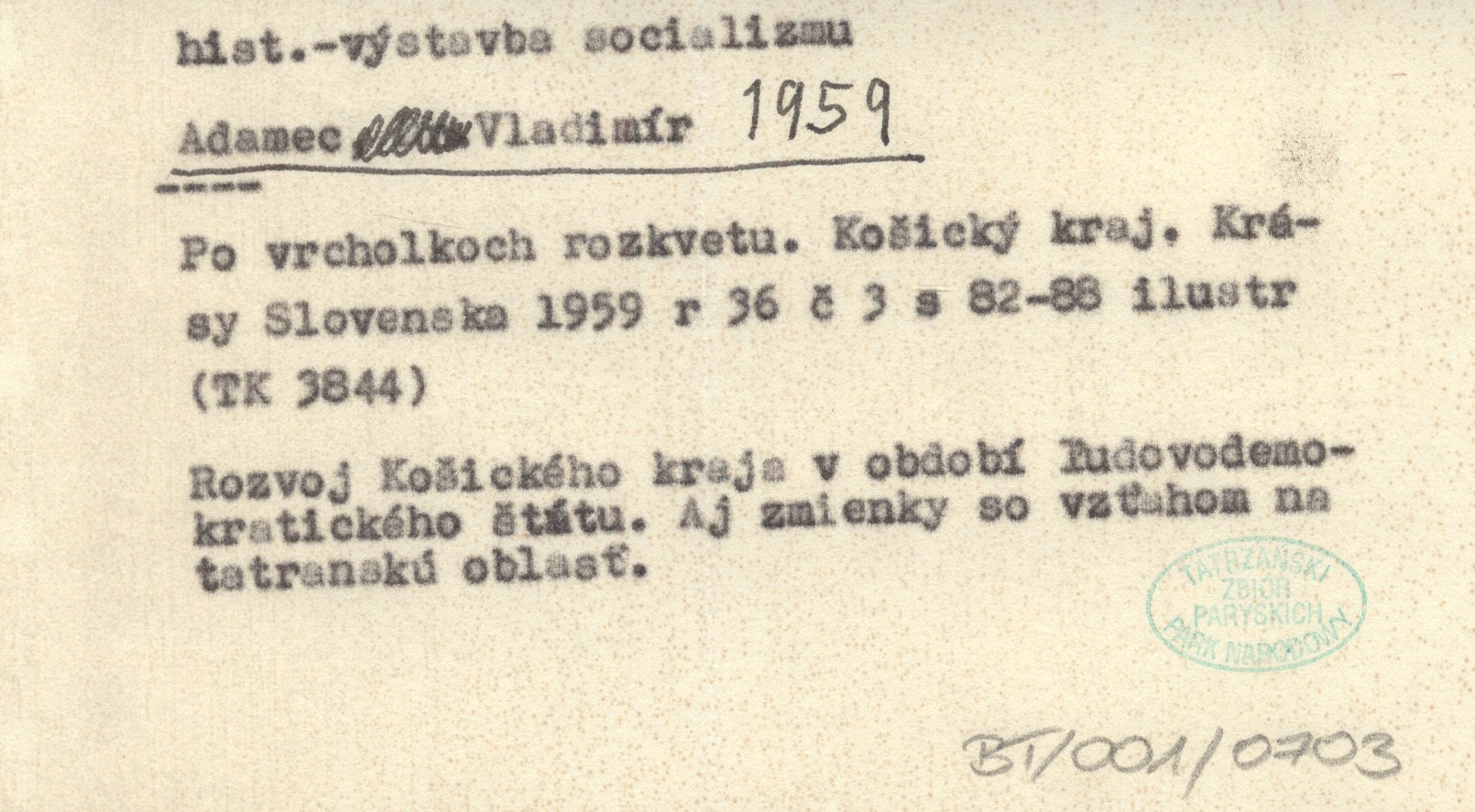 Krásy Slovenska, R. 36, nr 3: 82-88, il. hist.-výstavba socializmu ; Rozvoj Koąického kraja v období µudovodemokratického ątátu. Aj zmienky so vz»ahom na tatranskú oblas».