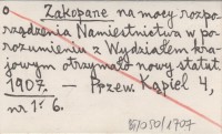 Zakopane na mocy rozporządzenia Namiestnictwa w porozumieniu z Wydziałem krajowym otrzymało nowy statut. 1907
