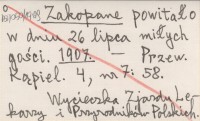 Zakopane powitało w dniu 26 lipca miłych gości. 1907