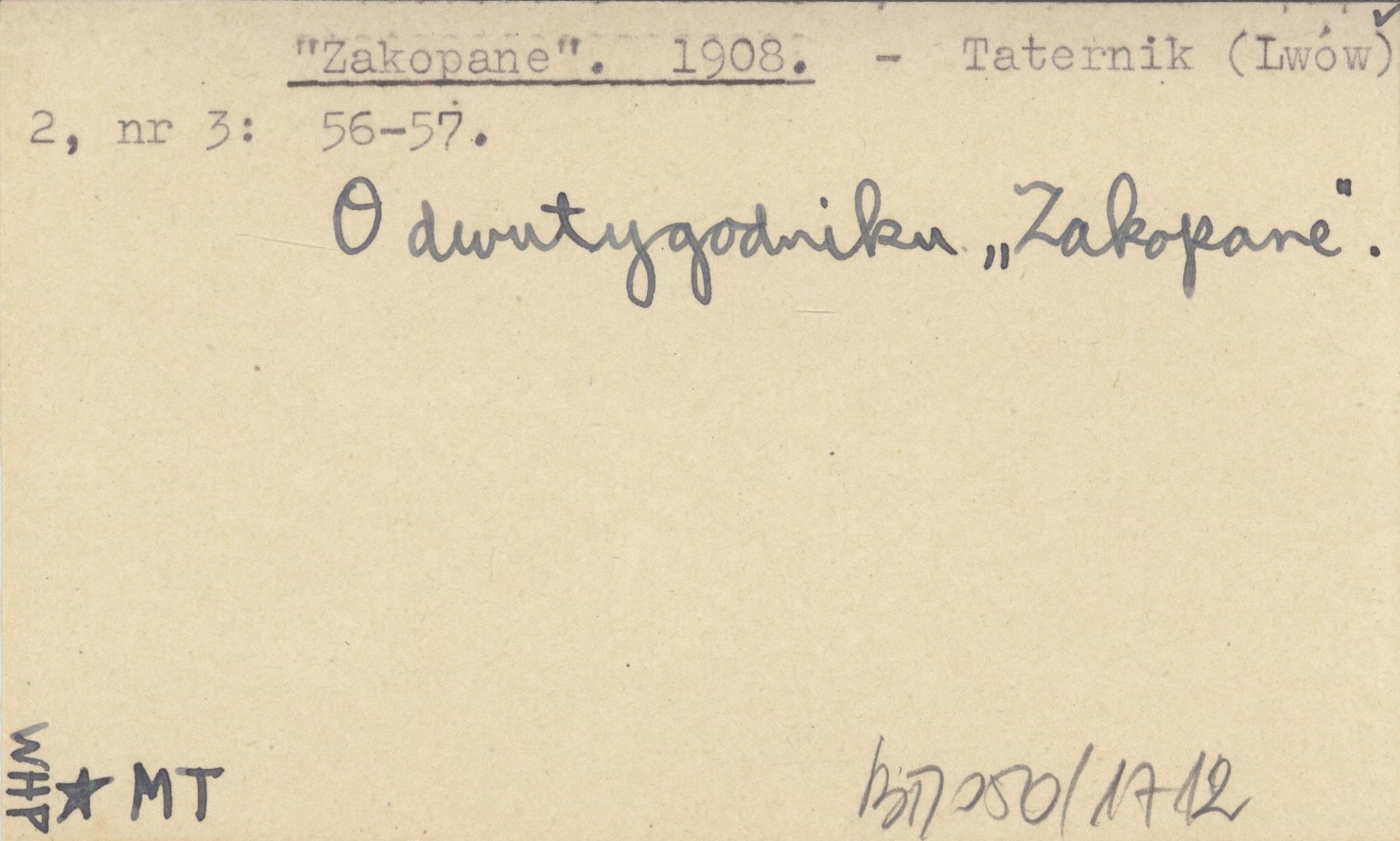 Taternik (Lwów) , 2, nr 3: 56-57. O dwutygodniku "Zakopane".