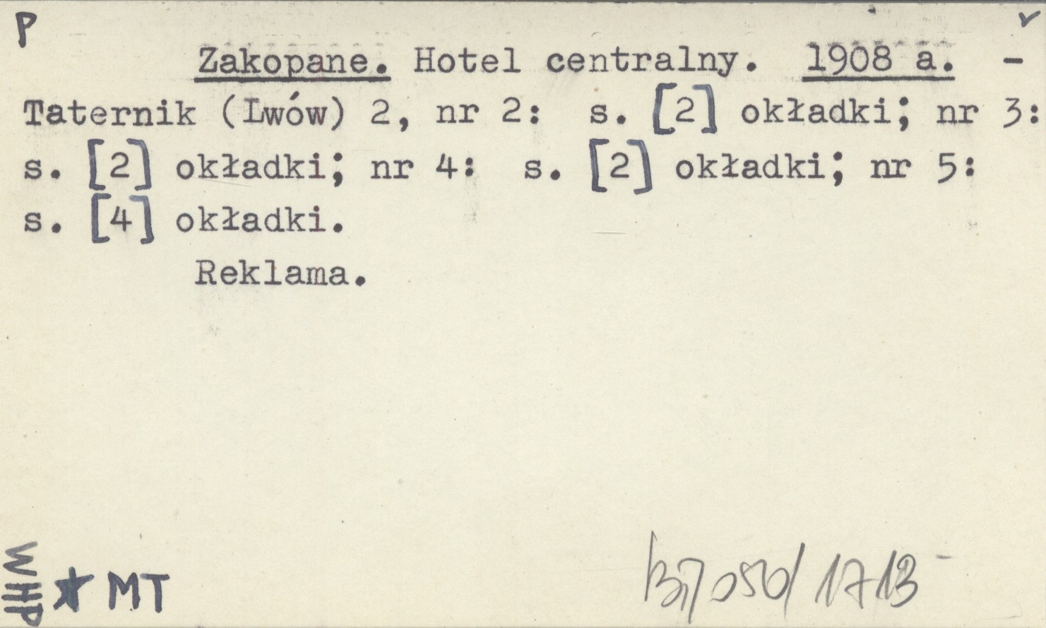 Taternik (Lwów) 2, nr 2: [2] okł. ; nr 3: [2] okł. ; nr 4: [2] okł. ; nr 5: [4] okł., Reklama.