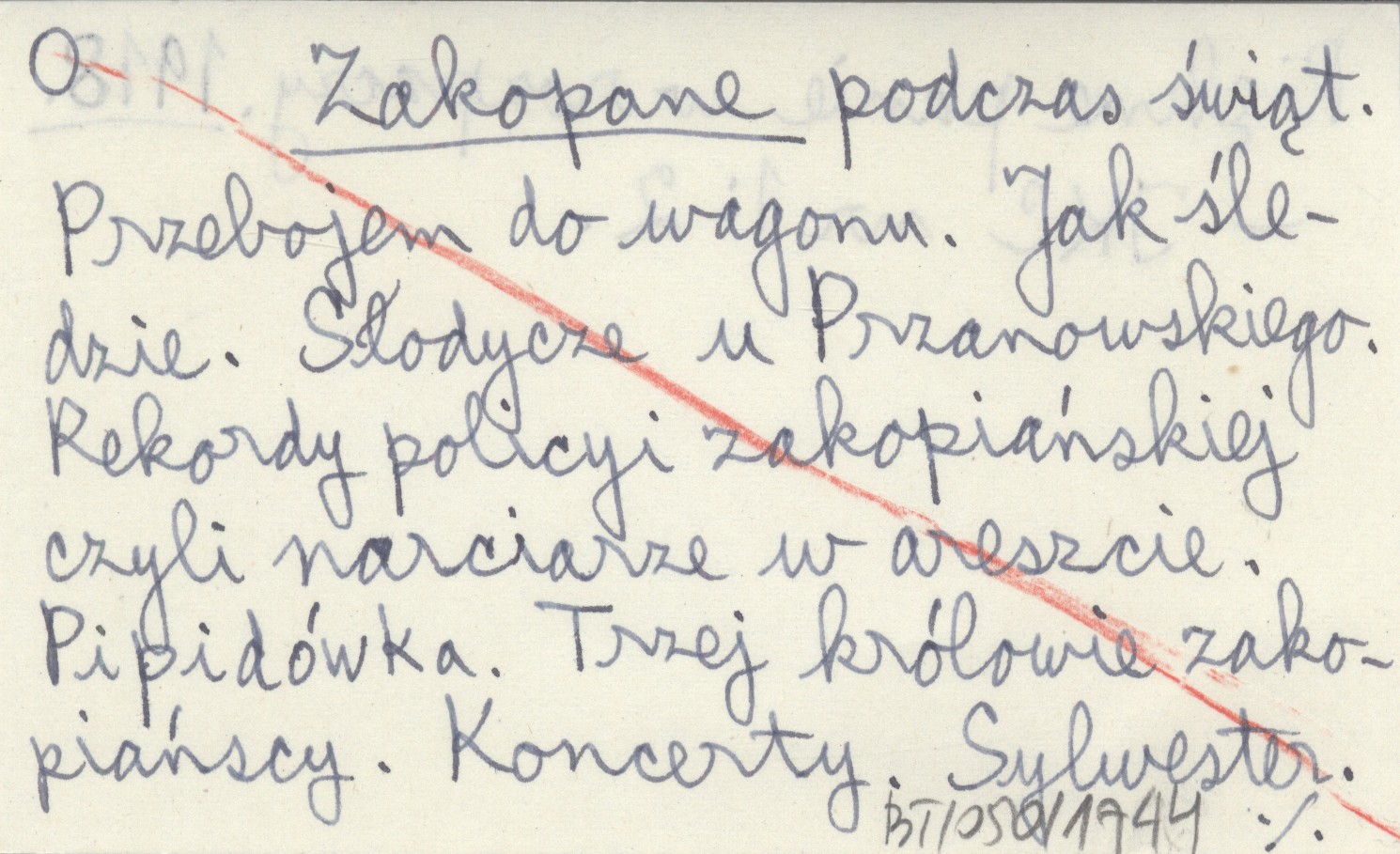 Zakopane podczas świąt. Przebojem do wagonu. Jak śledzie. Słodycze u Przanowskiego. Rekordy policyi zakopiańskiej czyli narciarze w areszcie. Pipidówka. Trzej królowie zakopiańscy. Koncerty. Sylwester. Piękne panie w rozpaczy. 1918