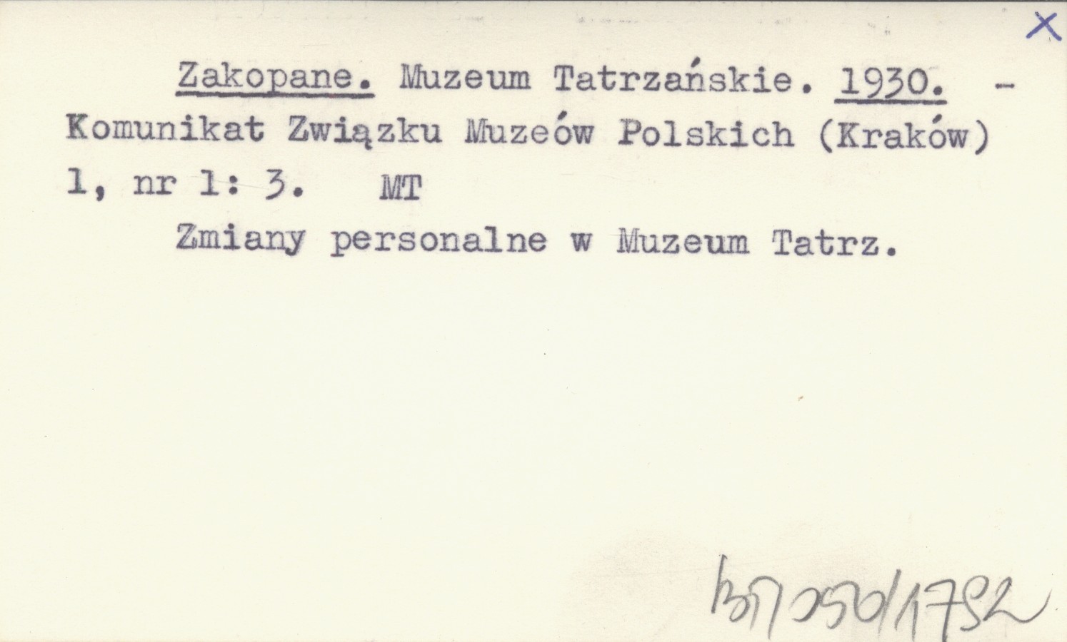 Komunikat Związku Muzeów Polskich (Kraków) , 1, nr 1: 3. Zmiany personalne w Muzeum Tatrzańskim.