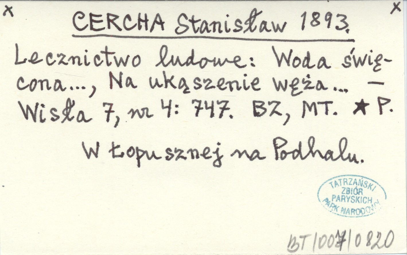 CERCHA Stanisław 1893 Lecznictwo ludowe: Woda święcona..., Na ukąszenie węża...