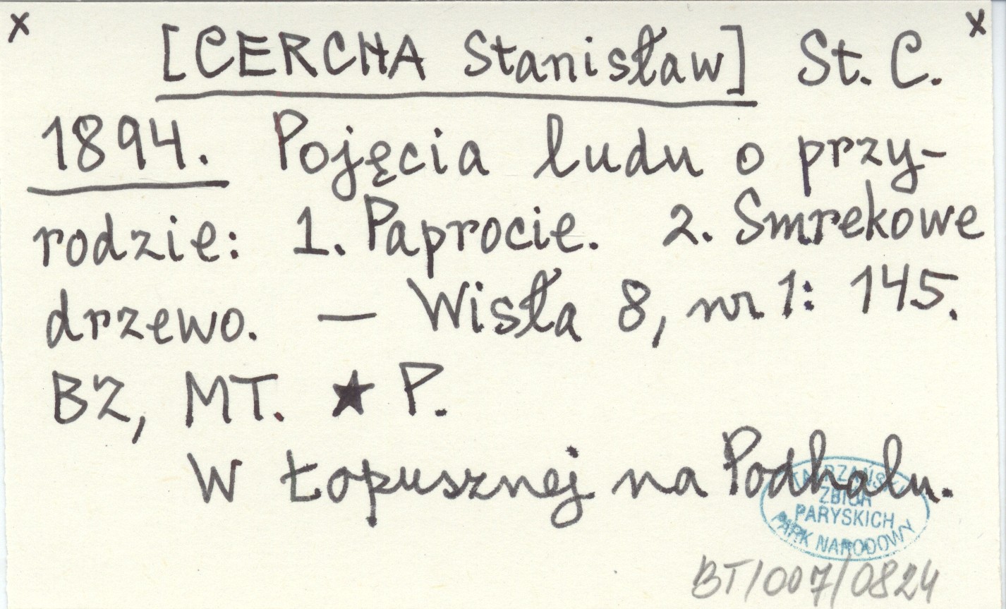 St. C. [CERCHA Stanisław] 1894 Pojęcia ludu o przyrodzie: 1. Paprocie. 2. Smrekowe drzewo.
