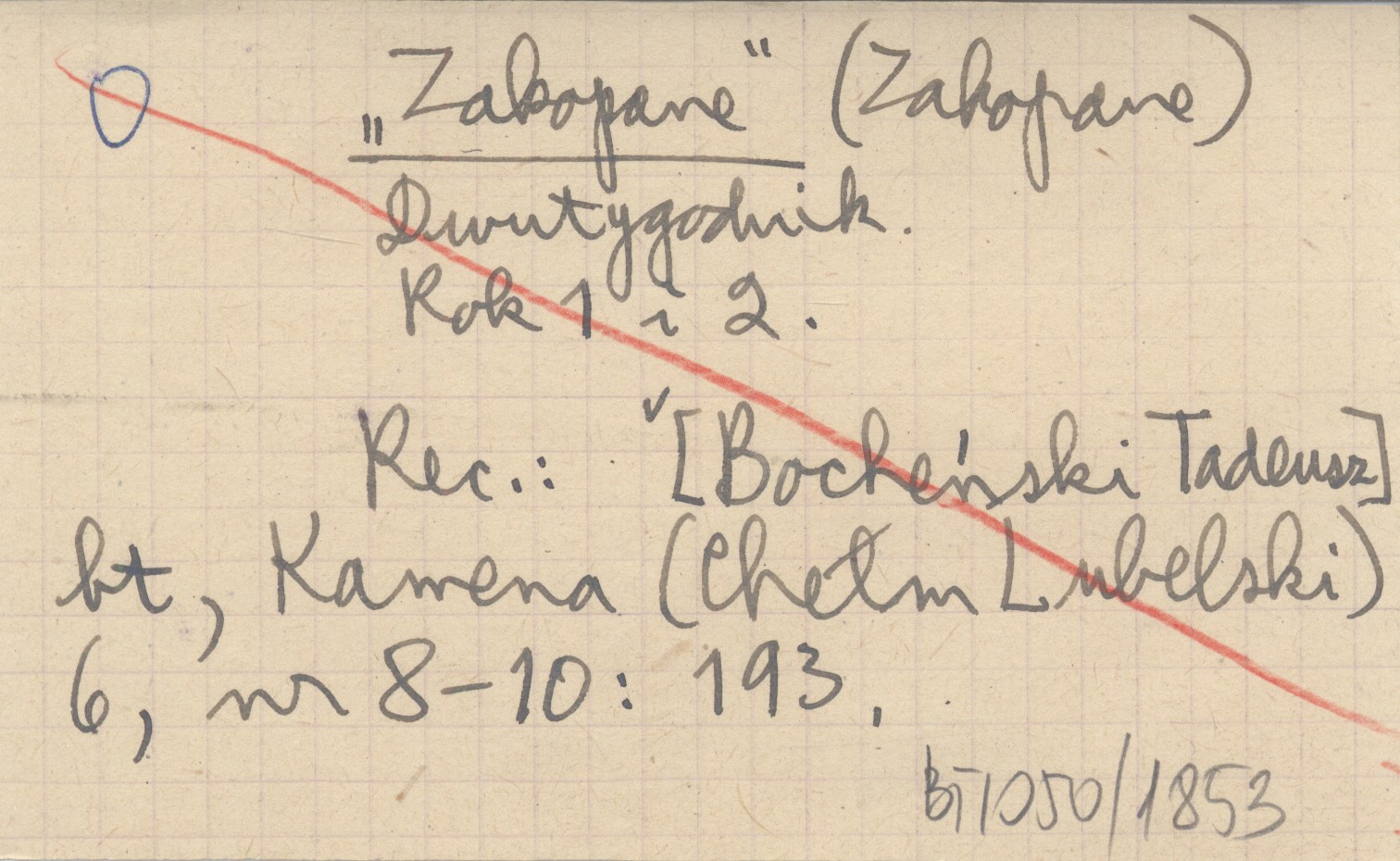 Zakopane (Zakopane) , R. 1, 2. Dwutygodnik. REC: [BOCHEŃSKI Tadeusz] bt, Kamena (Chełm Lubelski) 6, nr 8-10: 193.