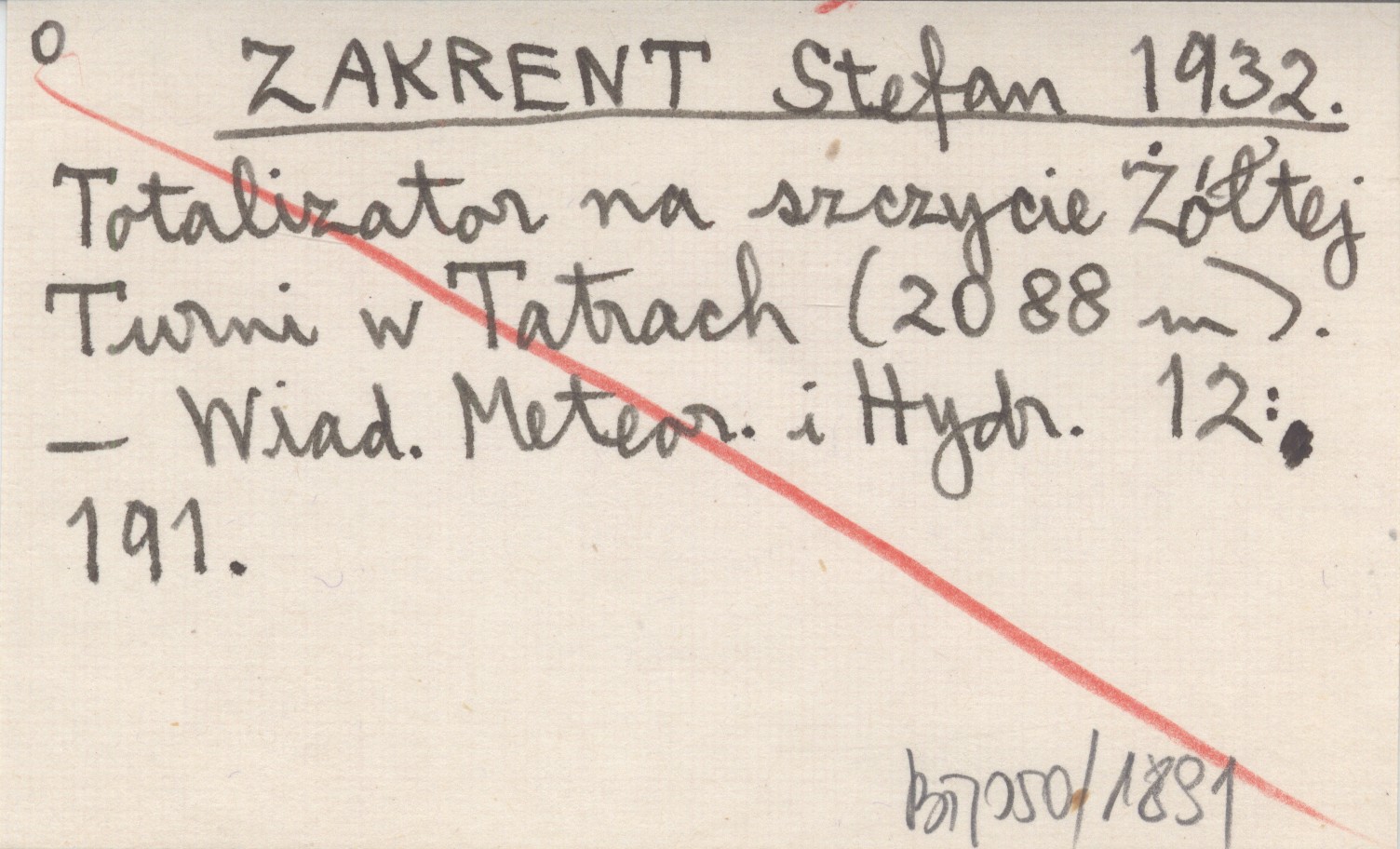 ZAKRENT Stefan 1932 Totalizator na szczycie Żółtej Turni w Tatrach (2088 m).