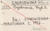 WYD: 3 Kraków , REC: STAROWIEYSKA-MORSTINOWA Z. 1946... ; ZBOROWSKI J. 1946 z ;