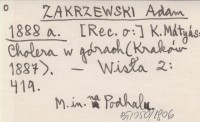 ZAKRZEWSKI Adam 1888 a [Rec. o:] K. Mátyás: Cholera w górach (Kraków 1887).
