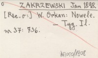 ZAKRZEWSKI Jan 1898 [Rec. o:] W. Orkan: Nowele.