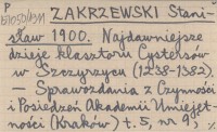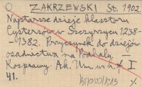ZAKRZEWSKI Stanisław 1900 Najdawniejsze dzieje klasztoru Cystersów w Szczyrzycu (1238-1382).