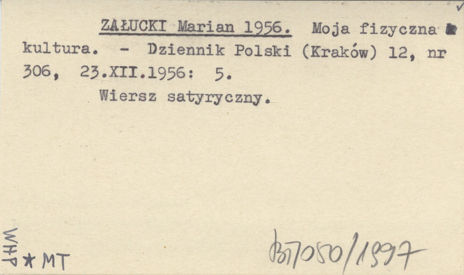 Dziennik Polski (Kraków) , 12, nr 306 (23 XII 1956): 5. Wiersz satyryczny.