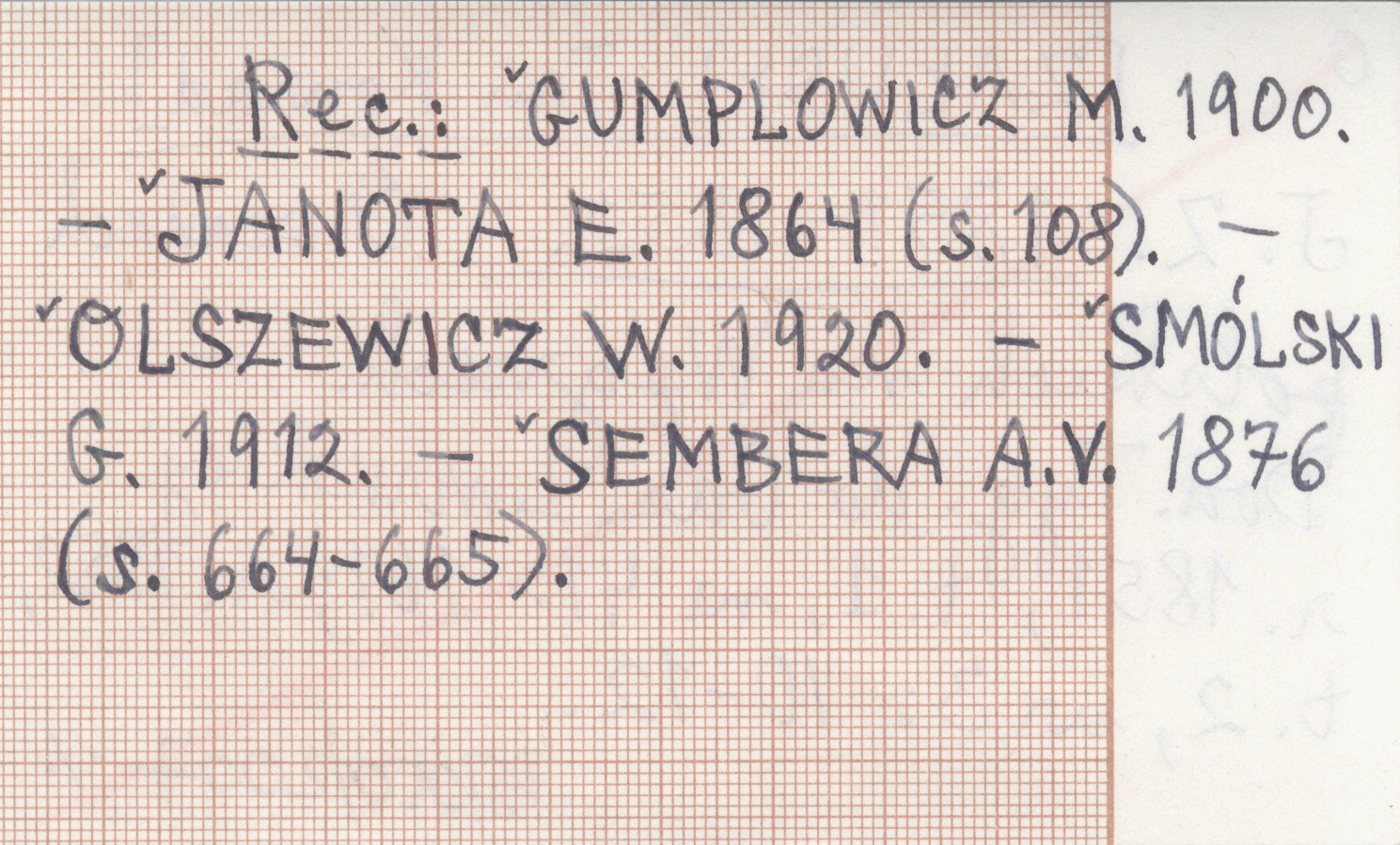 Dodatek Tygodniowy do Gazety Lwowskiej, 1851, t. 1, nr 41: 161 ; 1852, t. 2, nr 3: 10-12. REC: GUMPLOWICZ M. 1900 ; JANOTA E. 1864: 108 ; OLSZEWICZ W. 1920 ; SMÓLSKI G. 1912 ; SEMBERA A. V. 1876: 664-665 ;