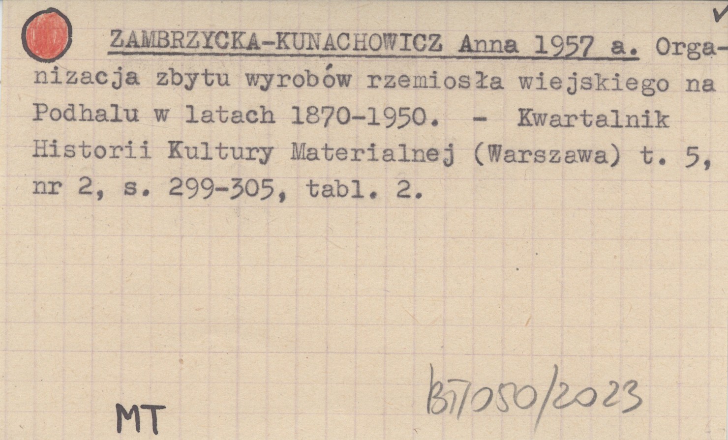 ZAMBRZYCKA-KUNACHOWICZ Anna 1957 a Organizacja zbytu wyrobów rzemiosła wiejskiego na Podhalu w latach 1870-1950.
