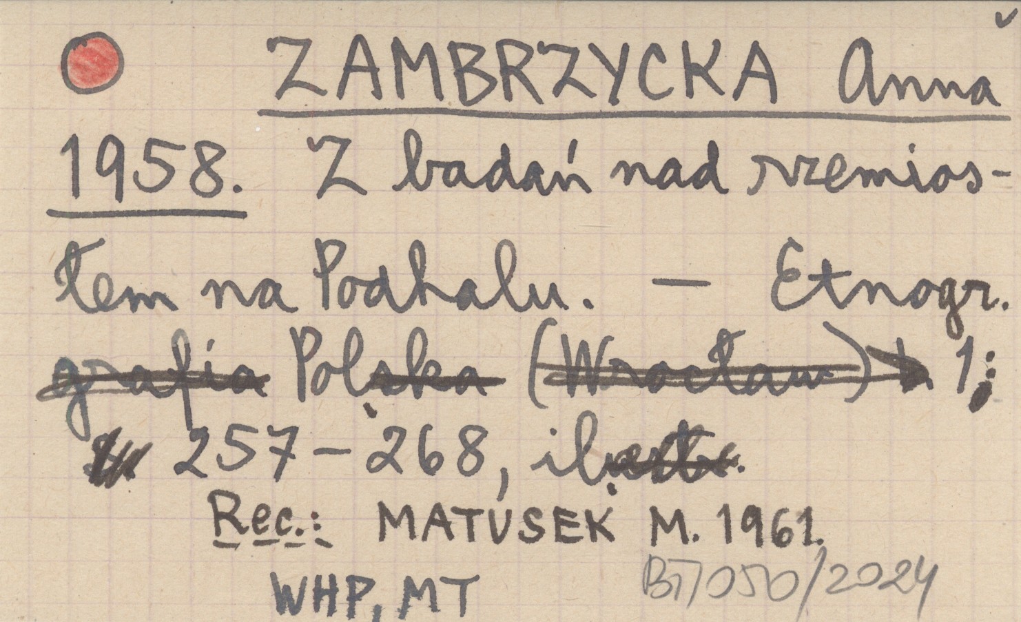 ZAMBRZYCKA Anna 1958 Z badań nad rzemiosłem na Podhalu.