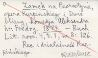 Zamek na Czorsztynie, opera Kurpińskiego i Dwie blizny, komedja Aleksandra hr. Fredry. 1877