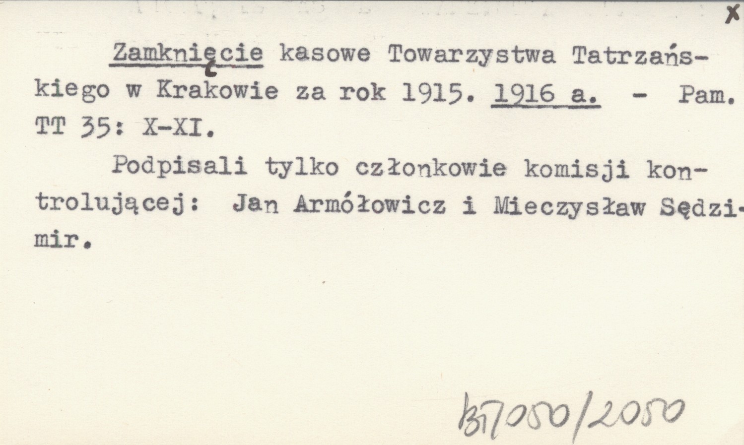 Pamiętnik Towarzystwa Tatrzańskiego, 35: X-XI. Podpisali tylko członkowie komisji kontrolującej: Jan Armółowicz i Mieczysław Sędzimir.