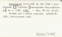 Zamknięcie rachunków za rok 1900 i preliminaż [!] budżetu [Towarzystwa Tatrzańskiego] na r. 1901. 1901