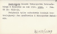 Zamknięcie kasowe Towarzystwa Tatrzańskiego w Krakowie za rok 1914. 1916