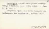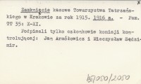 Zamknięcie kasowe Towarzystwa Tatrzańskiego w Krakowie za rok 1915. 1916 a