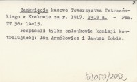 Zamknięcie kasowe Towarzystwa Tatrzańskiego w Krakowie za r. 1917. 1918 a