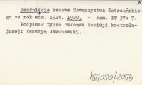 Zamknięcie kasowe Towarzystwa Tatrzańskiego za rok adm. 1918. 1920