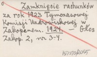 Zamknięcie rachunków za rok 1923 Tymczasowej Komisji Uzdrowiskowej w Zakopanem. 1924