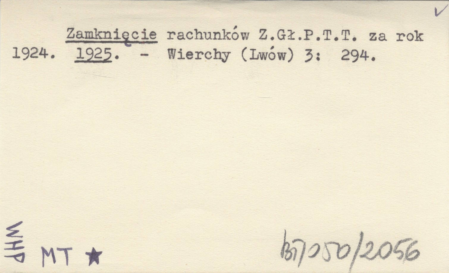 Zamknięcie rachunków Z.Gł.P.T.T. za rok 1924. 1925