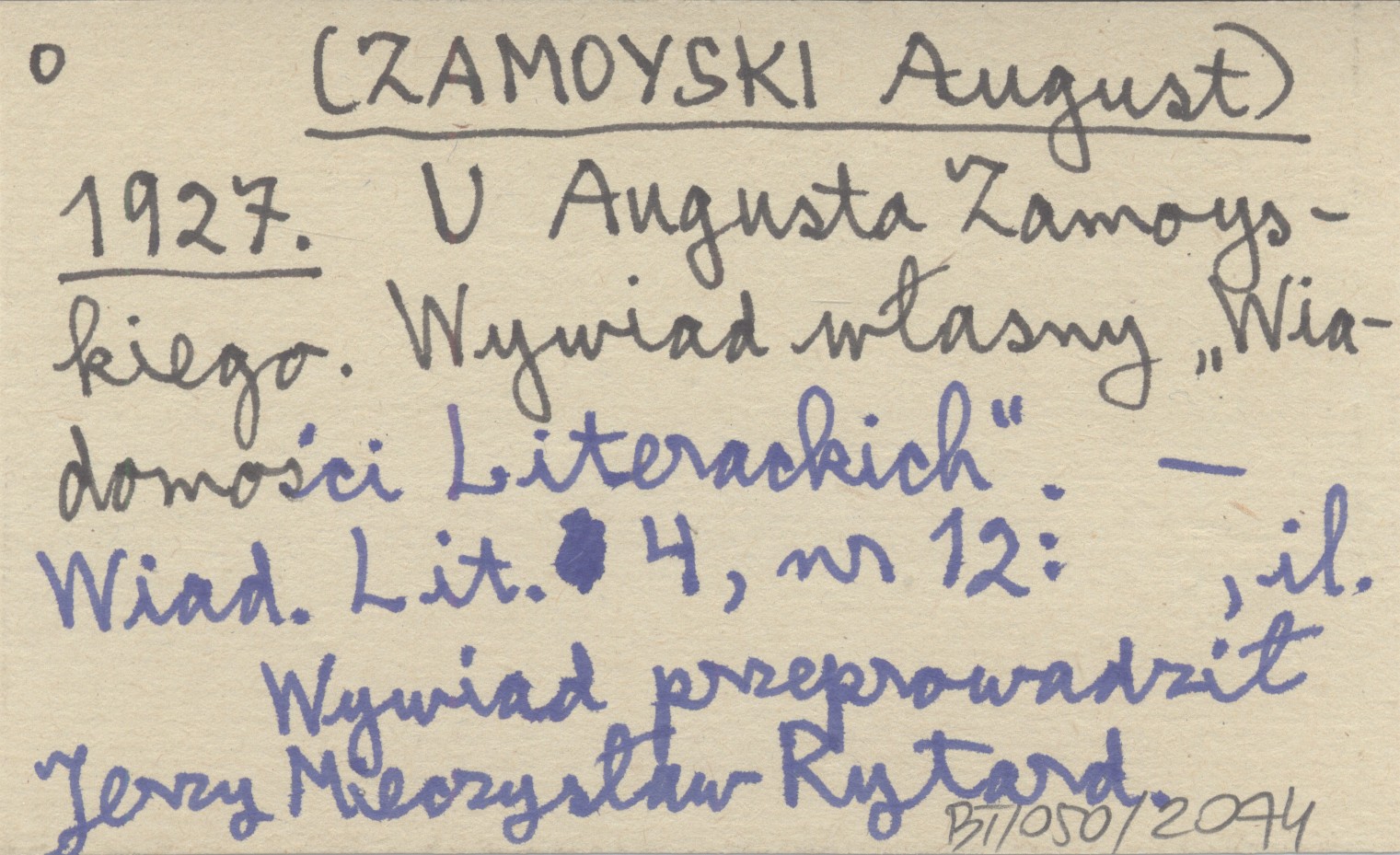 [ZAMOYSKI August] 1927 U Augusta Zamoyskiego. Wywiad własny "Wiadomości Literackich".