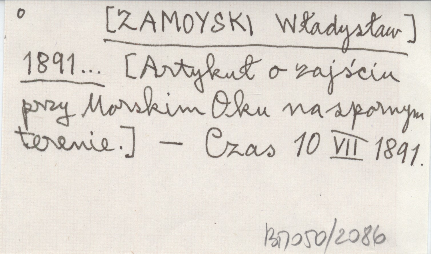[ZAMOYSKI Władysław] 1891... [Artykuł o zajściu przy Morskim Oku na spornym terenie.]