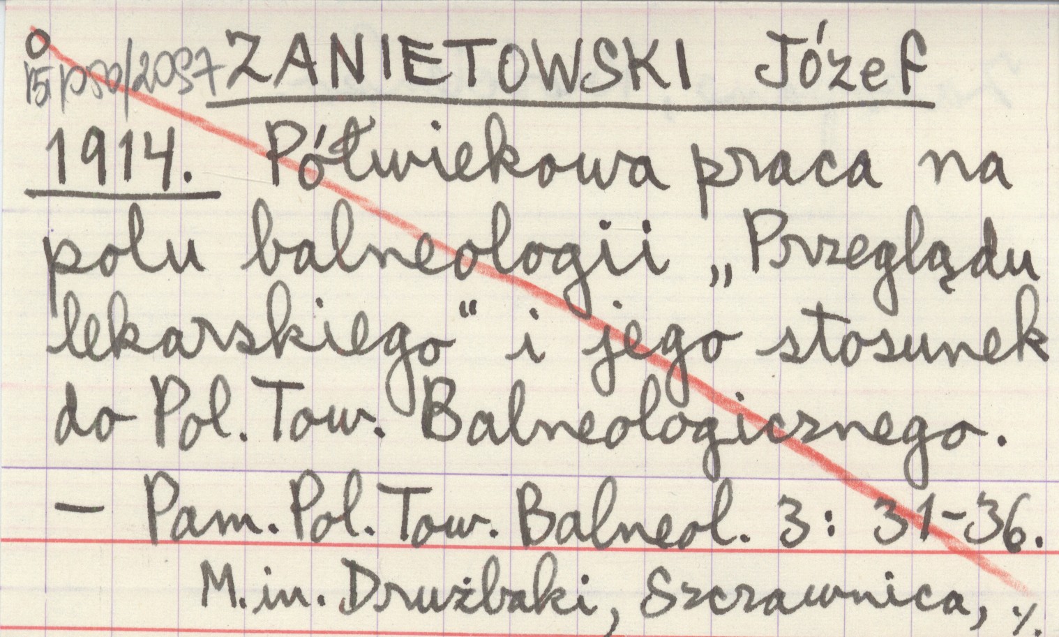 ZANIETOWSKI Józef 1914 Półwiekowa praca na polu balneologii "Przeglądu lekarskiego" i jego stosunek do Pol. Tow. Balneologicznego.