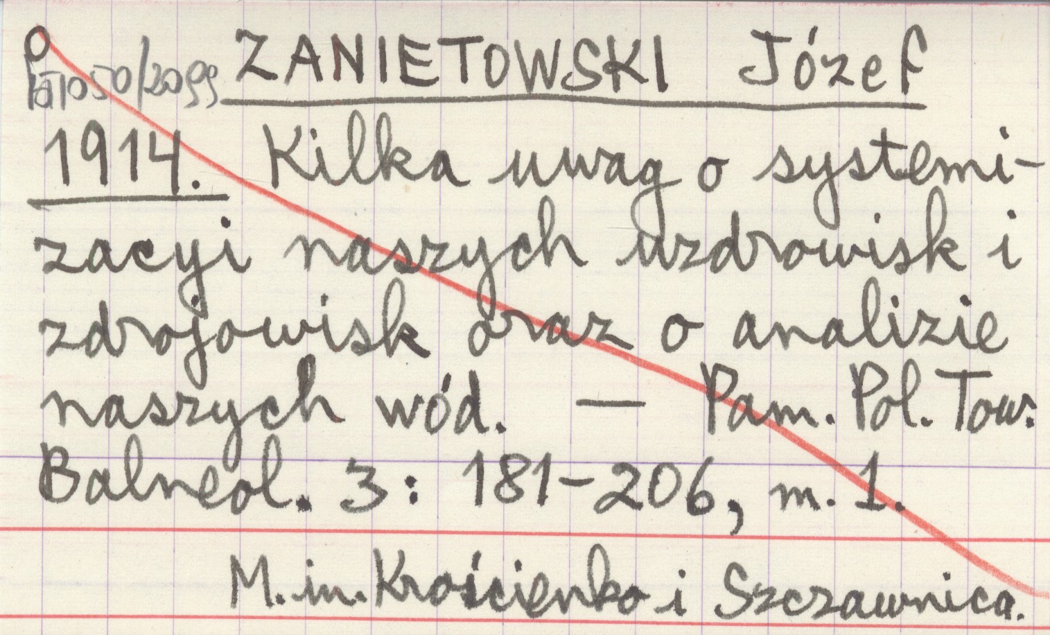 ZANIETOWSKI Józef 1914 Kilka uwag o systemizacyi naszych uzdrowisk i zdrojowisk oraz o analizie naszych wód.