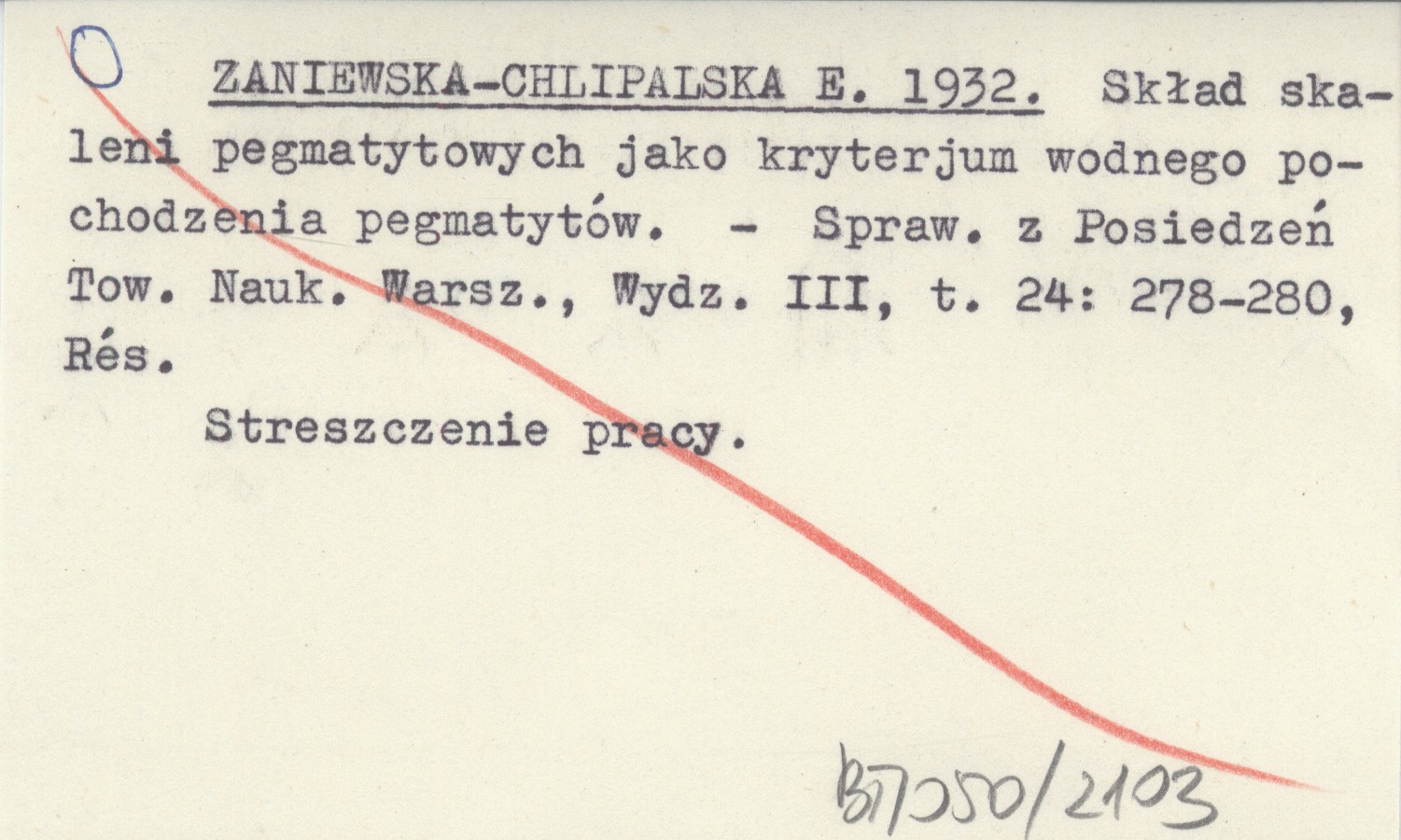 ZANIEWSKA-CHLIPALSKA E. 1932 Skład skaleni pegmatytowych jako kryterjum wodnego pochodzenia pegmatytów.
