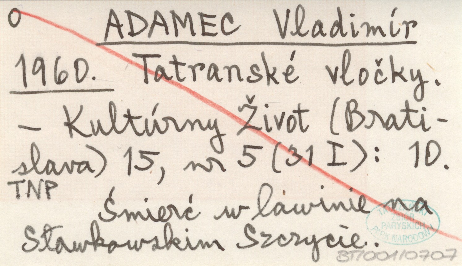 Kultúrny Život (Bratislava) , 15, nr 5 (31 I): 10. Śmierć w lawinie na Sławkowskim Szczycie.