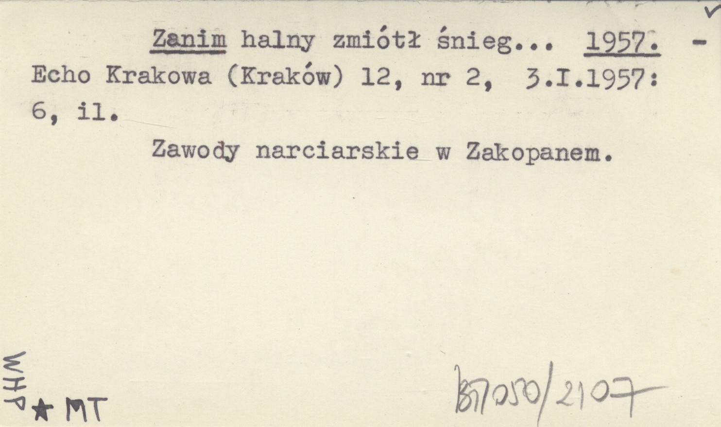 Echo Krakowa (Kraków) , 12, nr 2 (3 I 1957): 6, il. Zawody narciarskie w Zakopanem.