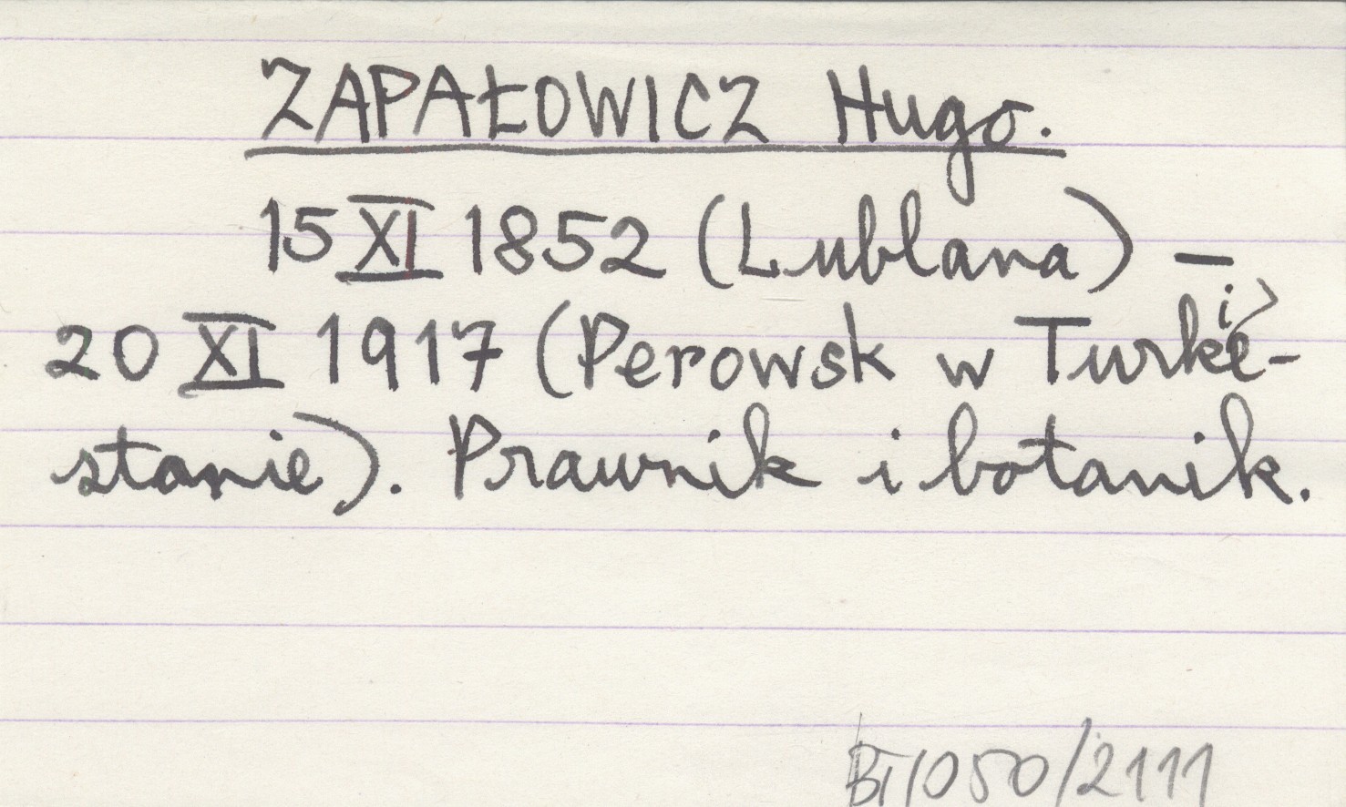 15 XI 1852 (Lublana) - 20 XI 1917 (Perowsk w Turkiestanie). Prawnik i botanik.