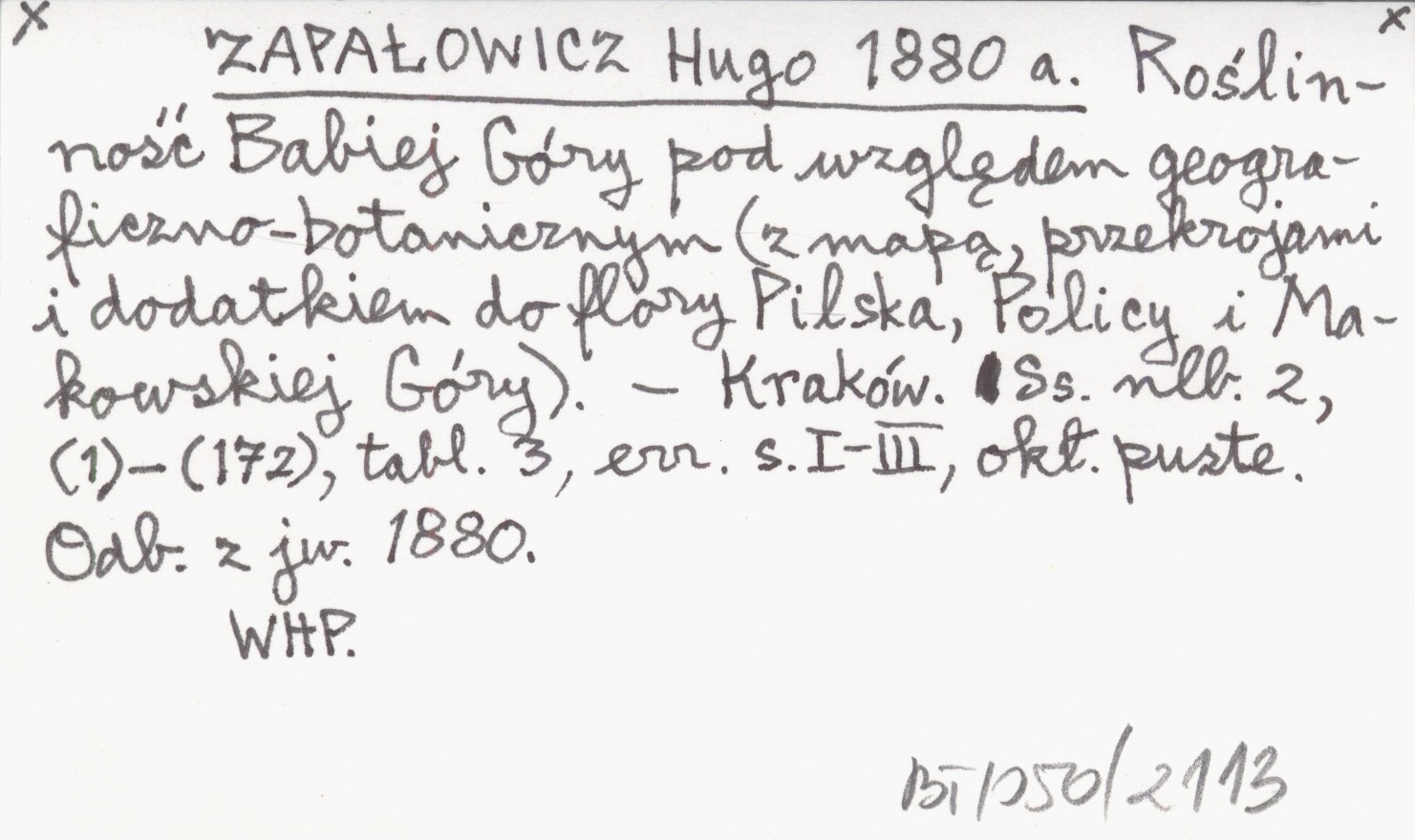 ZAPAŁOWICZ Hugo 1880 a Roślinność Babiej Góry pod względem geograficzno-botanicznym (z mapą, przekrojami i dodatkiem do flory Pilska, Policy i Makowskiej Góry).