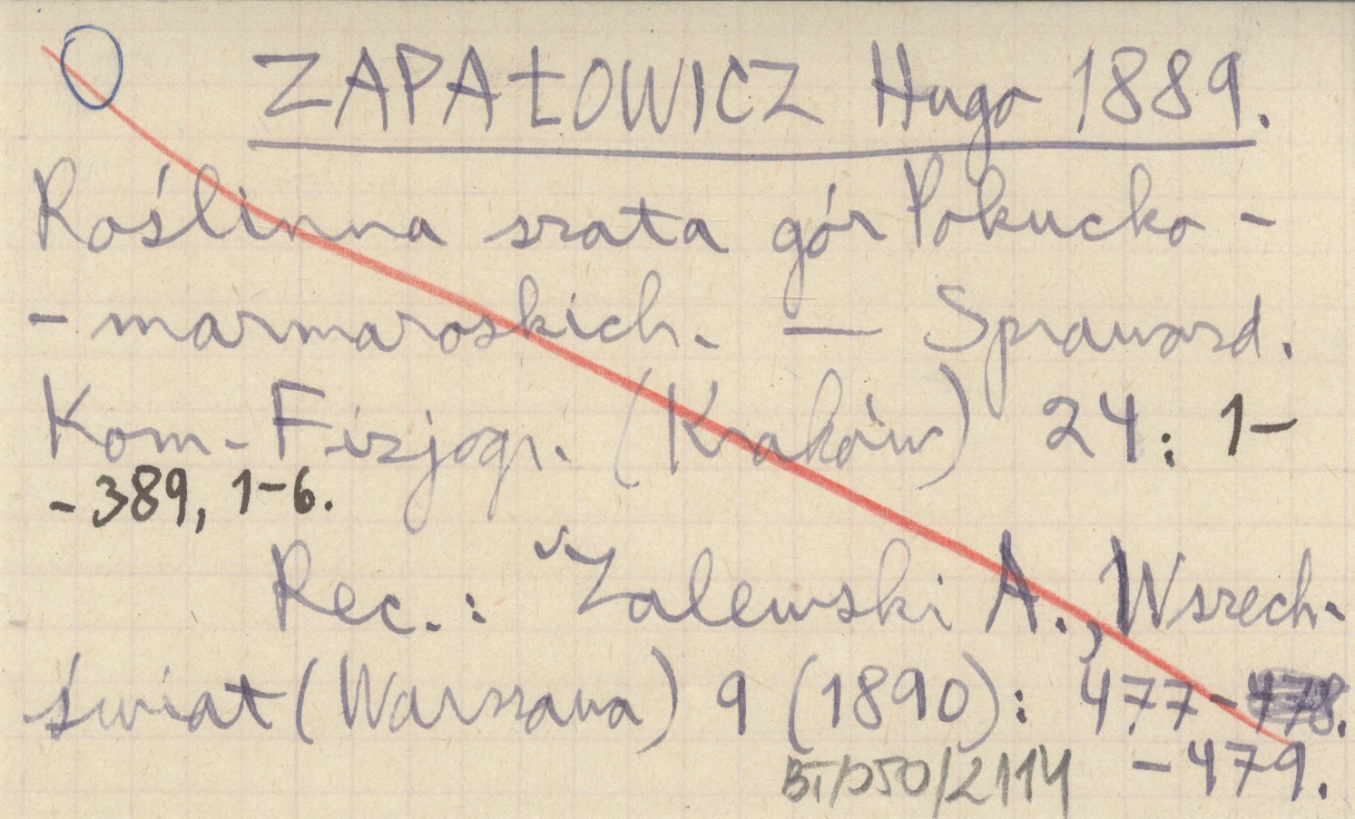 Sprawozdanie Komisji Fizjograficznej (Kraków) , 24: 1-389, 1-6. REC: ZALEWSKI A., Wszechświat (Warszawa) 9 (1890): 477-479.