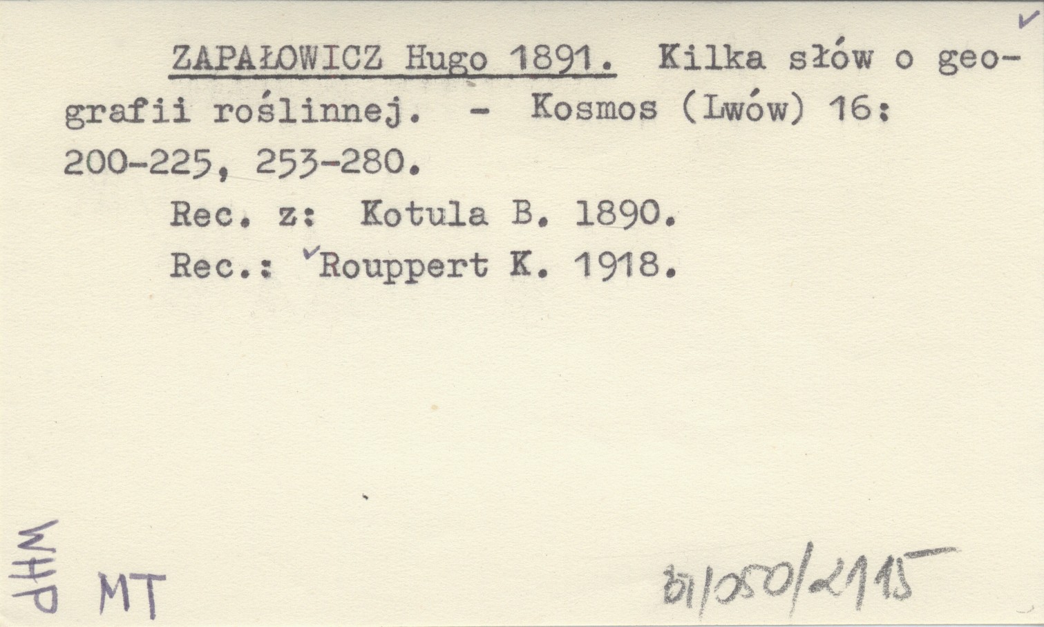ZAPAŁOWICZ Hugo 1891 Kilka słów o geografii roślinnej.