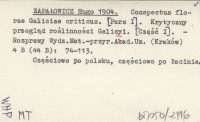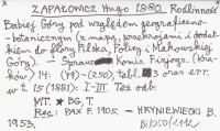 ZAPAŁOWICZ Hugo 1880 a Roślinność Babiej Góry pod względem geograficzno-botanicznym (z mapą, przekrojami i dodatkiem do flory Pilska, Policy i Makowskiej Góry).