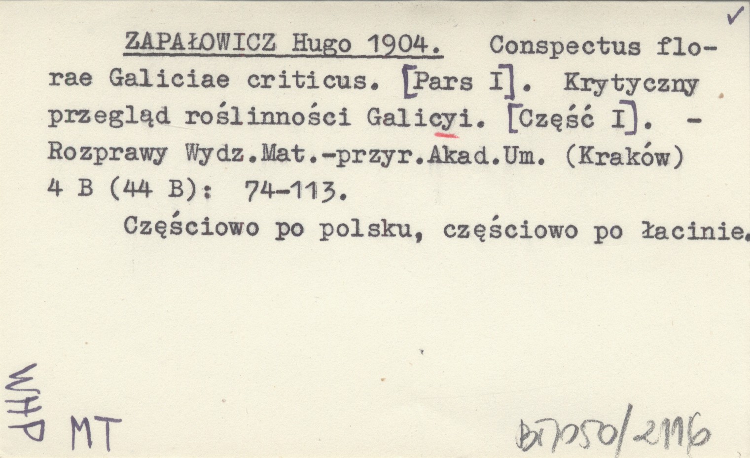 Rozprawy Wydziału Matematyczno-Przyrodniczego Akademii Umiejętności (Kraków) , 4 B (44 B): 74-113. Częściowo po polsku, częściowo po łacinie.