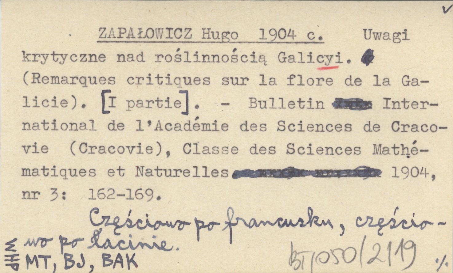 ZAPAŁOWICZ Hugo 1904 c Uwagi krytyczne nad roślinnością Galicyi. (Remarques critiques sur la flore de la Galicie). [I partie.]