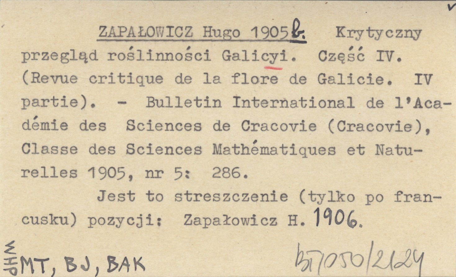 Bulletin International de l'Akadémie Polonaise des Sciences et des Lettres, Classe des Sciences Mathématiques et Naturalles (Cracovie) , 1905, nr 5: 286. Jest to streszczenie (tylko po francusku) pozycji: ZAPAŁOWICZ H. 1906.