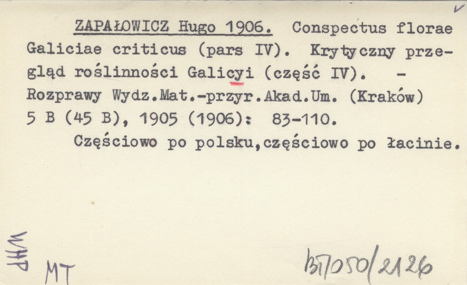 Rozprawy Wydziału Matematyczno-Przyrodniczego Akademii Umiejętności (Kraków) , 5 B (45 B), 1905 (1906): 83-110. Częściowo po polsku, częściowo po łacinie.