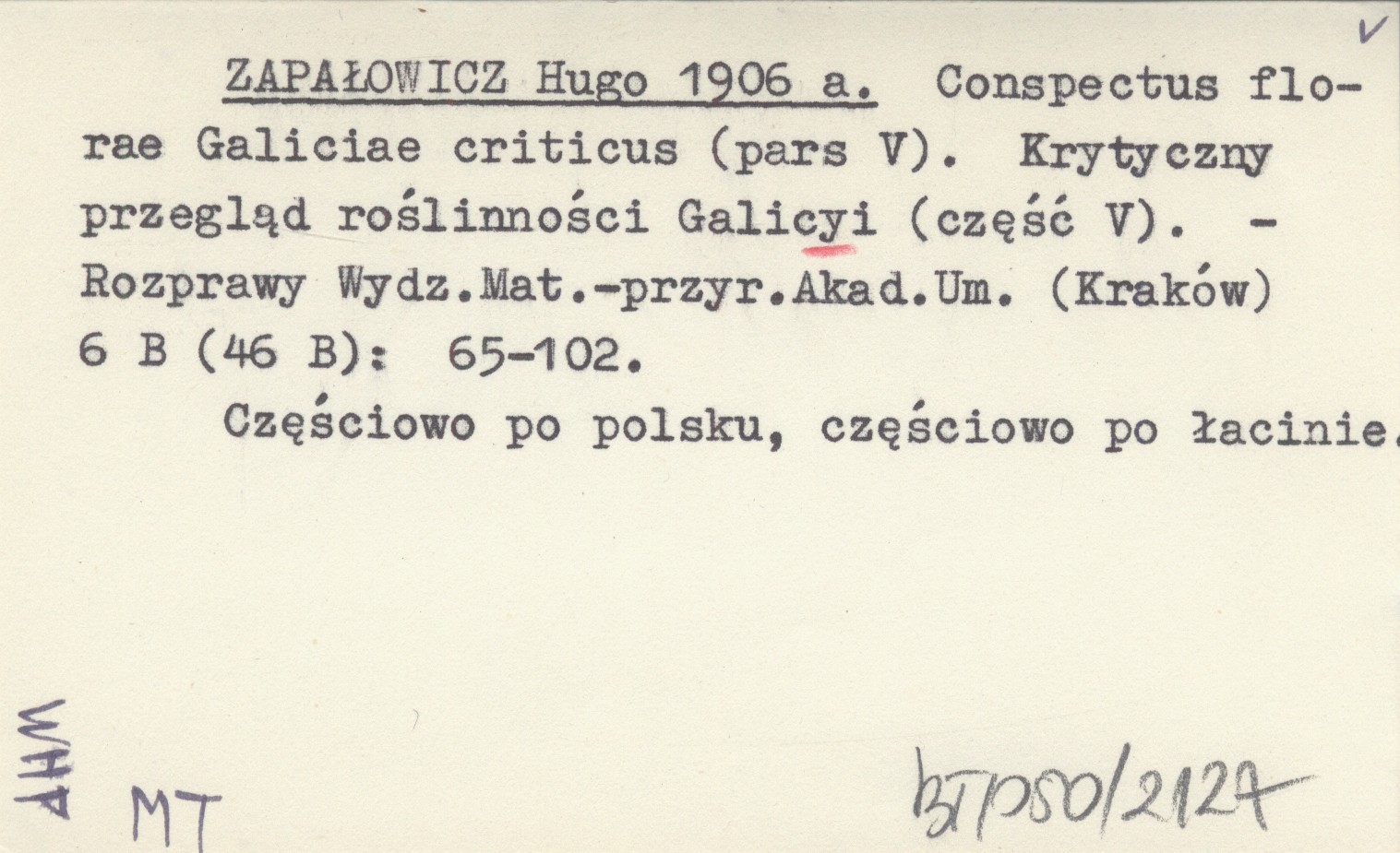 ZAPAŁOWICZ Hugo 1906 a Conspectus florae Galiciae criticus. (Pars V). Krytyczny przegląd roślinności Galicyi (część V).