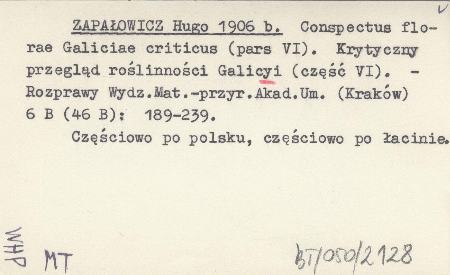 ZAPAŁOWICZ Hugo 1906 b Conspectus florae Galiciae criticus (pars VI). Krytyczny przegląd roślinności Galicyi (część VI).