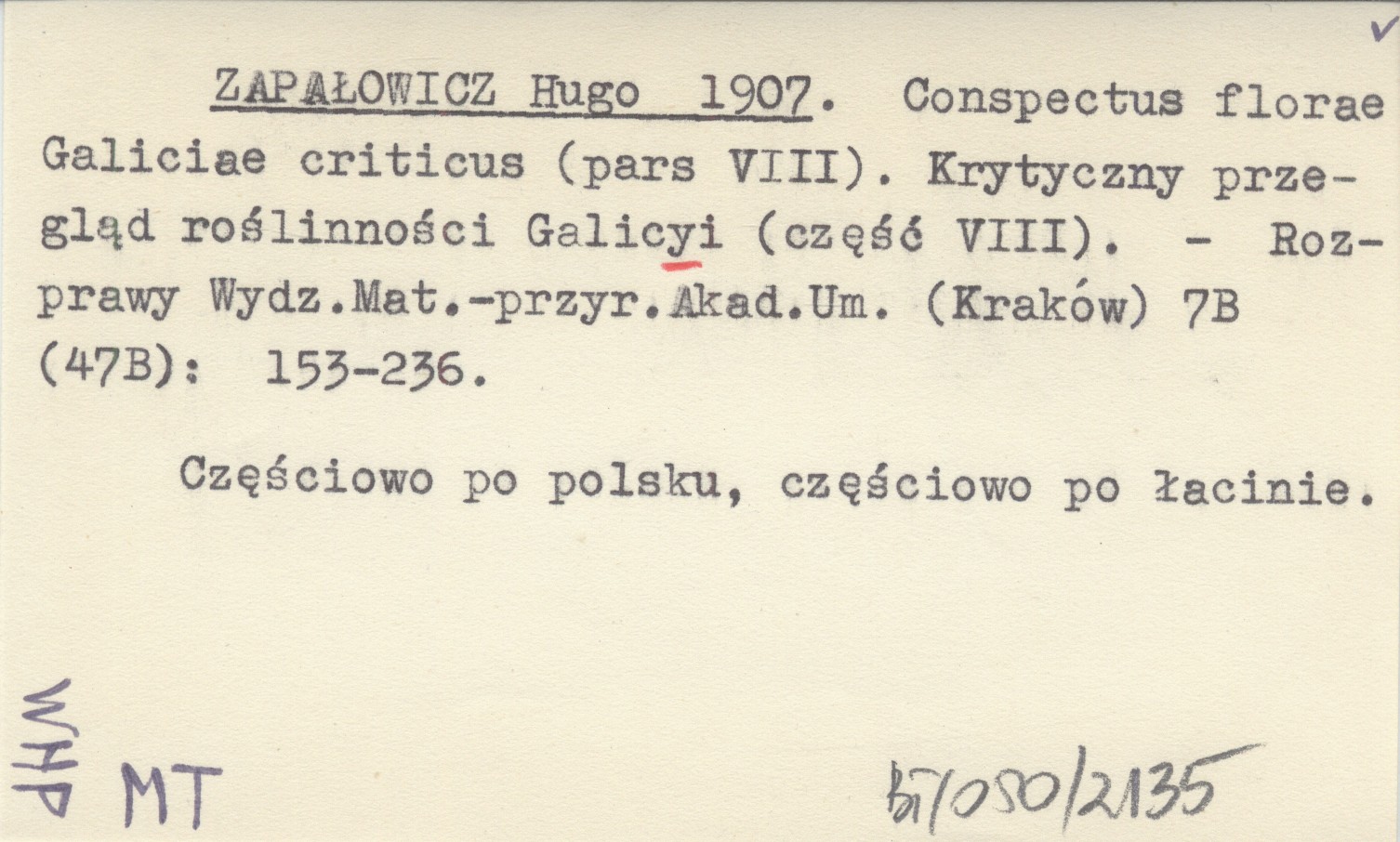 Rozprawy Wydziału Matematyczno-Przyrodniczego Akademii Umiejętności (Kraków) , 7 B (47 B): 153-236. Częściowo po polsku, częściowo po łacinie.