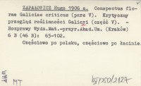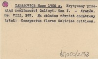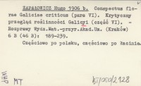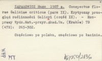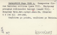 ZAPAŁOWICZ Hugo 1907 a Conspectus florae Galiciae criticus (pars IX). Krytyczny przegląd roślinności Galicyi (część IX).